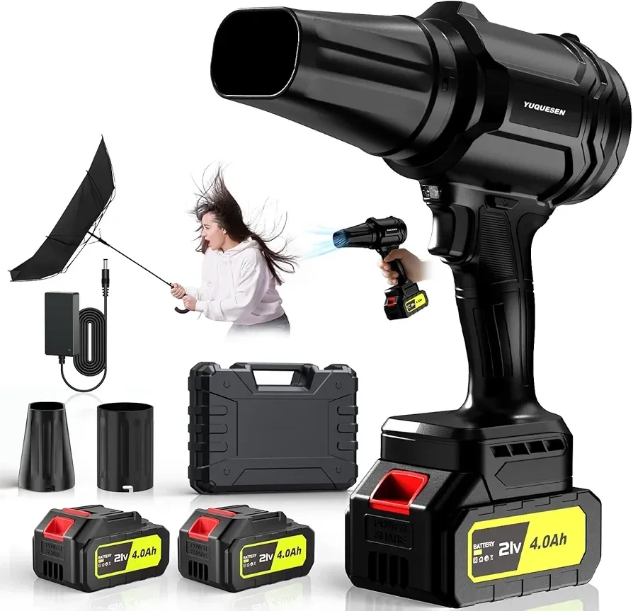 980,000 RPM Turbo Power – 3X Faster Than Raking】This cordless leaf blower features a high-efficiency turbine motor that delivers hurricane-force wind speeds of 50+ m/s (equivalent to 110+ mph), blowing away wet leaves, grass clippings and debris in seconds. It features aerodynamic, technological blades that maintain optimal performance without overheating, making it perfect for large yards.