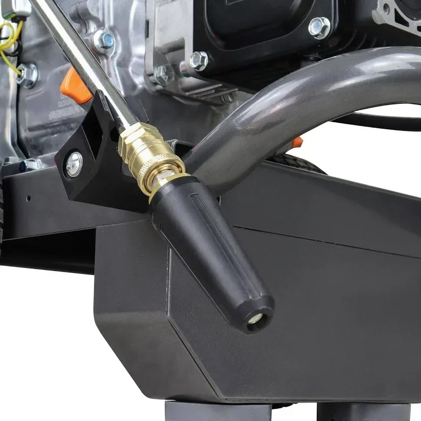 Hyundai HYW3100P2 Pressure Washer Powered by a 212cc 4-stroke petrol engine with high torque and low emissions, started using the recoil start with CDI ignition system for easy starting. The 212cc engine has tremendous mid range torque so the machine does not have to be operated at maximum revs while cleaning making it much quieter and reduces fuel consumption. Engineered to handle the toughest cleaning jobs with ease, this Hyundai pressure washer is cold water gravity fed to deliver 3100psi and a flow rate of 10L/min for quick, easy and effective cleaning of driveways, patios, vehicles, windows and other demanding jobs. Designed with a Annovi Reverberi (AR) pump which provides an outstanding performance with excellent reliability. Making light work of tasks where no electricity is available this pressure washer is fitted with tough pneumatic tyres which makes it much easier to transport even in uneven terrain. The tubular steel frame and anti vibration feet provides all round protection and stability. Designed with a trigger gun and lance rest and built in nozzle compartment to provide easy access. Comes complete with a 30ft / 10m hose allowing you to work further from the machine without having to stop and move the pressure washer. Cut cleaning times in half with the included turbo nozzle which enhances the cleaning power of the HYW3100P2 making it ideal for removing heavy dirt and grime removal. The included 4 quick connect nozzles(0°, 15°, 40° and standard soap nozzle) can also be changed quickly and effortlessly. Comes complete with 4 quick release nozzles, turbo nozzle, trigger gun, lance, 10m hose, spark plug spanner, quick start guide.